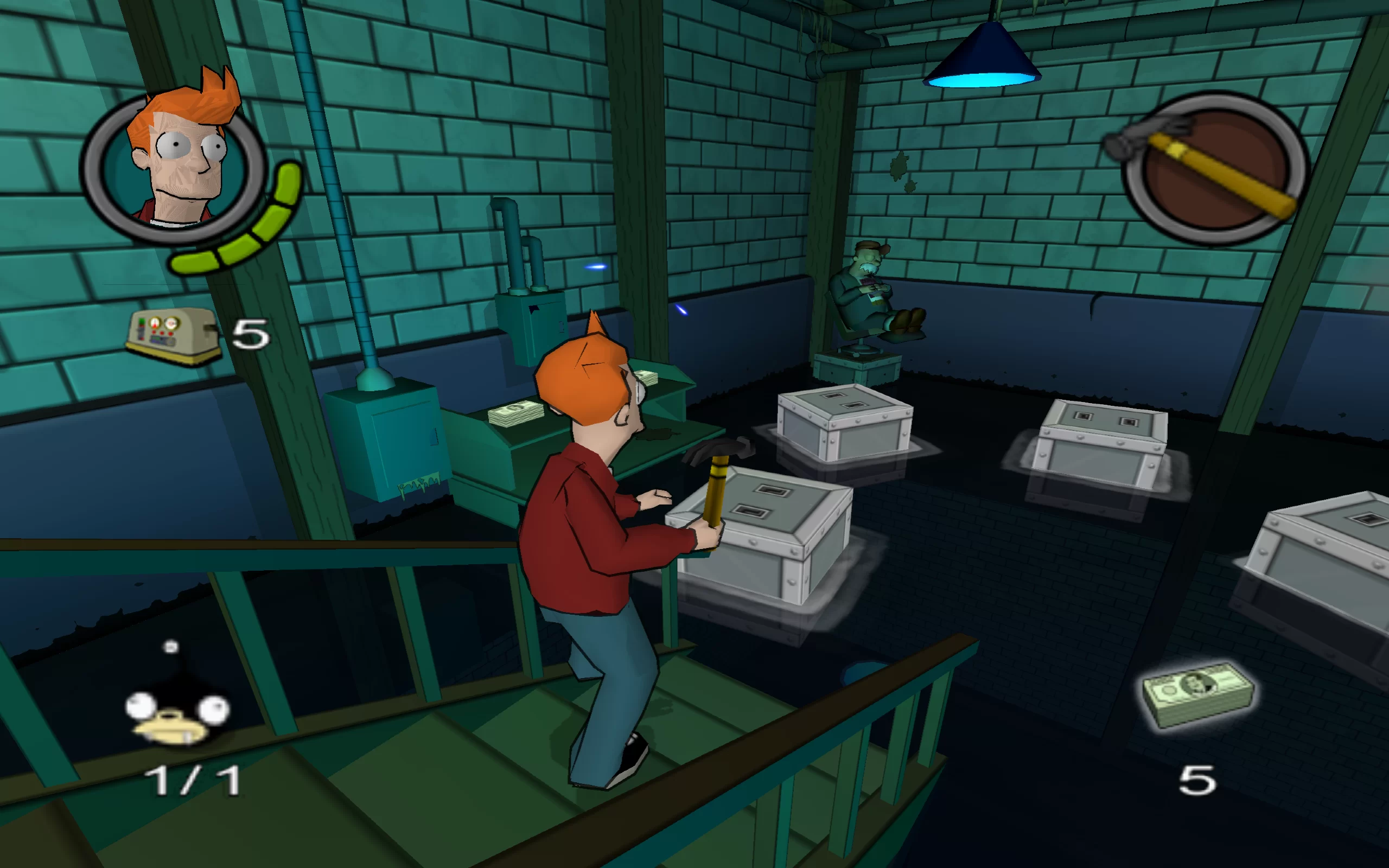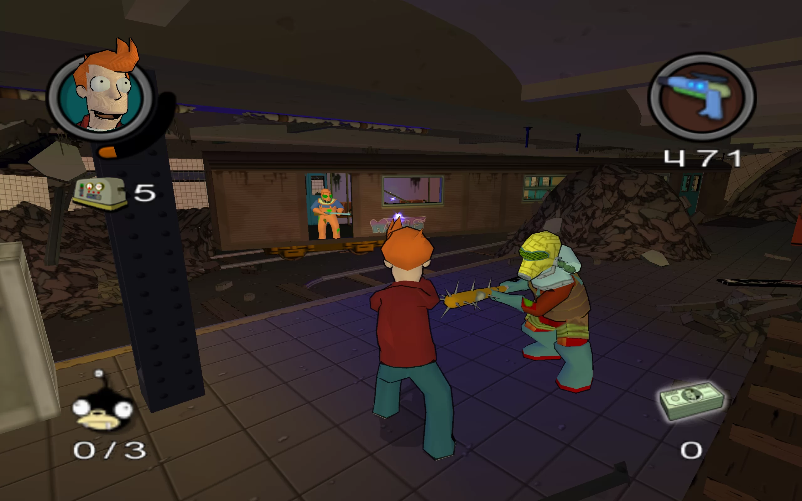 Геймплей Futurama для PS2 представляет собой увлекательное сочетание приключенческих элементов, головоломок и даже экшена. Игрокам предстоит исследовать различные локации из мира Футурамы, включая офис Межпланетного Экспресса, Старый и Новый Нью-Йорк.